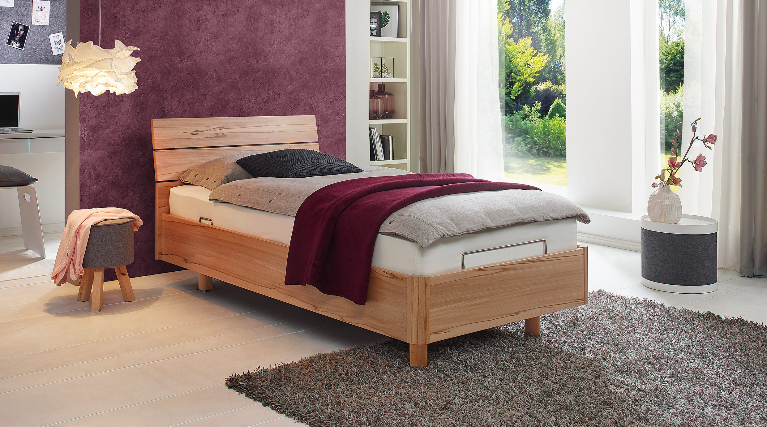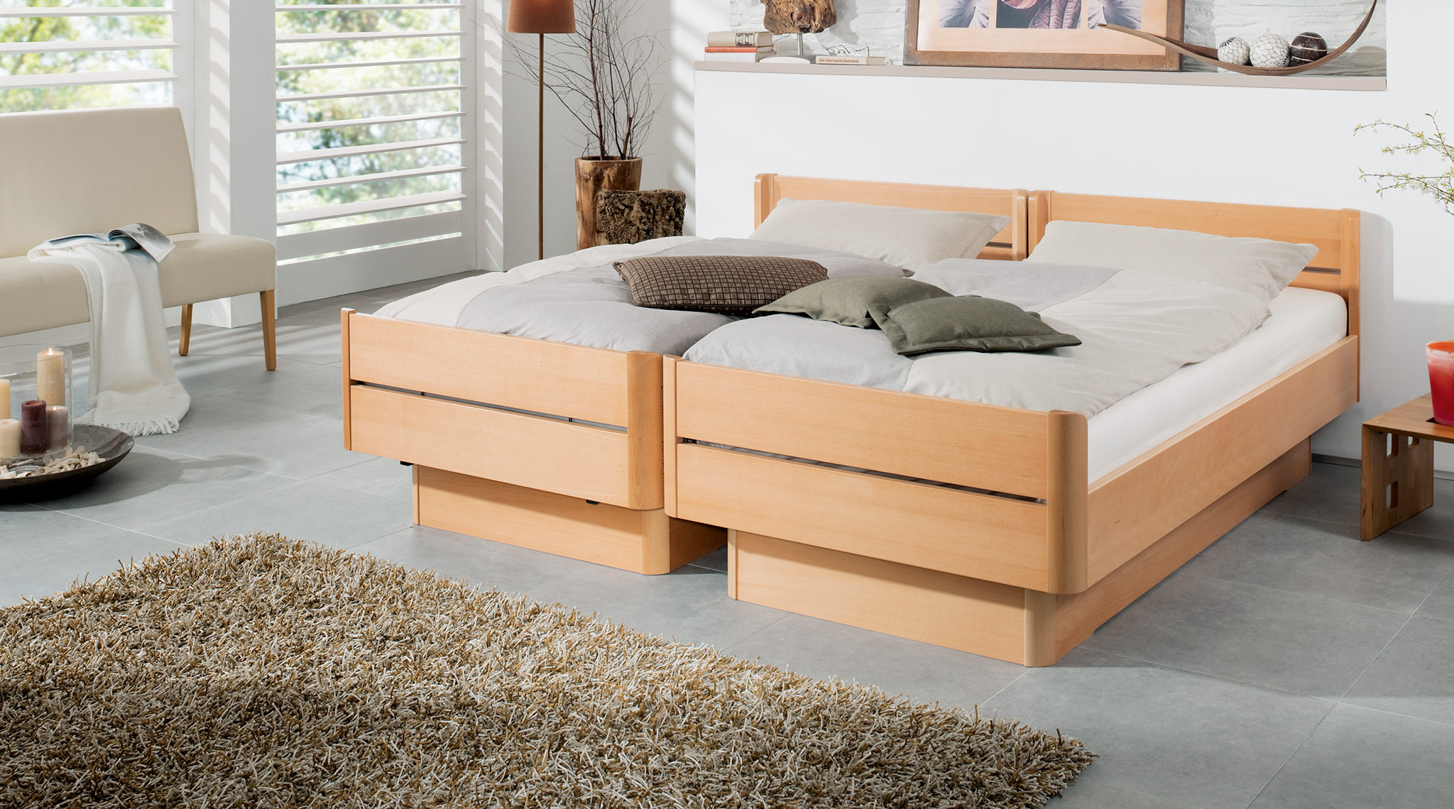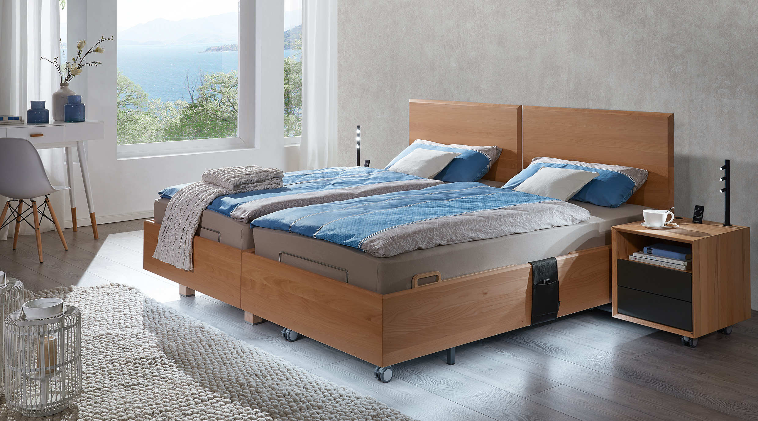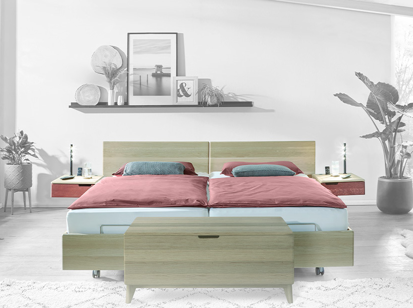 Unsere Betten mit Komforthöhe bedeuten für Sie leichteres Setzen und Aufstehen durch die erhöhte Liegefläche. Dieser kleine, aber wesentliche Unterschied hilft bei einem idealen Start in den neuen Tag. Ihre individuelle Komforthöhe können Sie ganz leicht durch den verstellbaren Auflagebeschlag an dem jeweiligen Bett bestimmen.